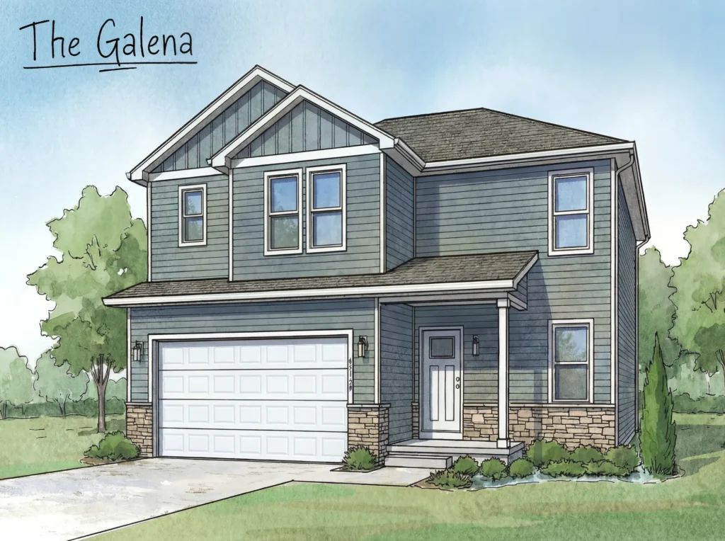 A spacious two-story home designed for versatile modern living. Offering 1,993 square feet, this plan features four bedrooms with two and a half baths, providing ample room for family, guests, and daily routines. The main level centers around an open-concept kitchen, dining, and living area—perfect for gathering and entertaining—while the upper level ensures privacy and quiet relaxation. With an included basement ready for a recreation room, home office, or expansive storage, The Galena delivers flexible comfort and plenty of room to grow.